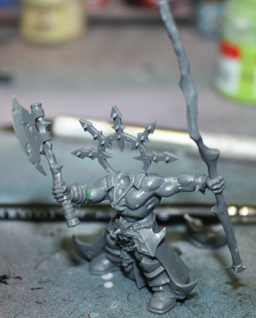 2 of their weapon are done using Cavalry lance, one is a banner pole with a blightking sword on top and the last one is done with Orghotts weapon. I think that all 3 beside Orghotts' look too much like spears and not enough like halberd. What could i do to change that? Switch to an axe head? shorten the pole?