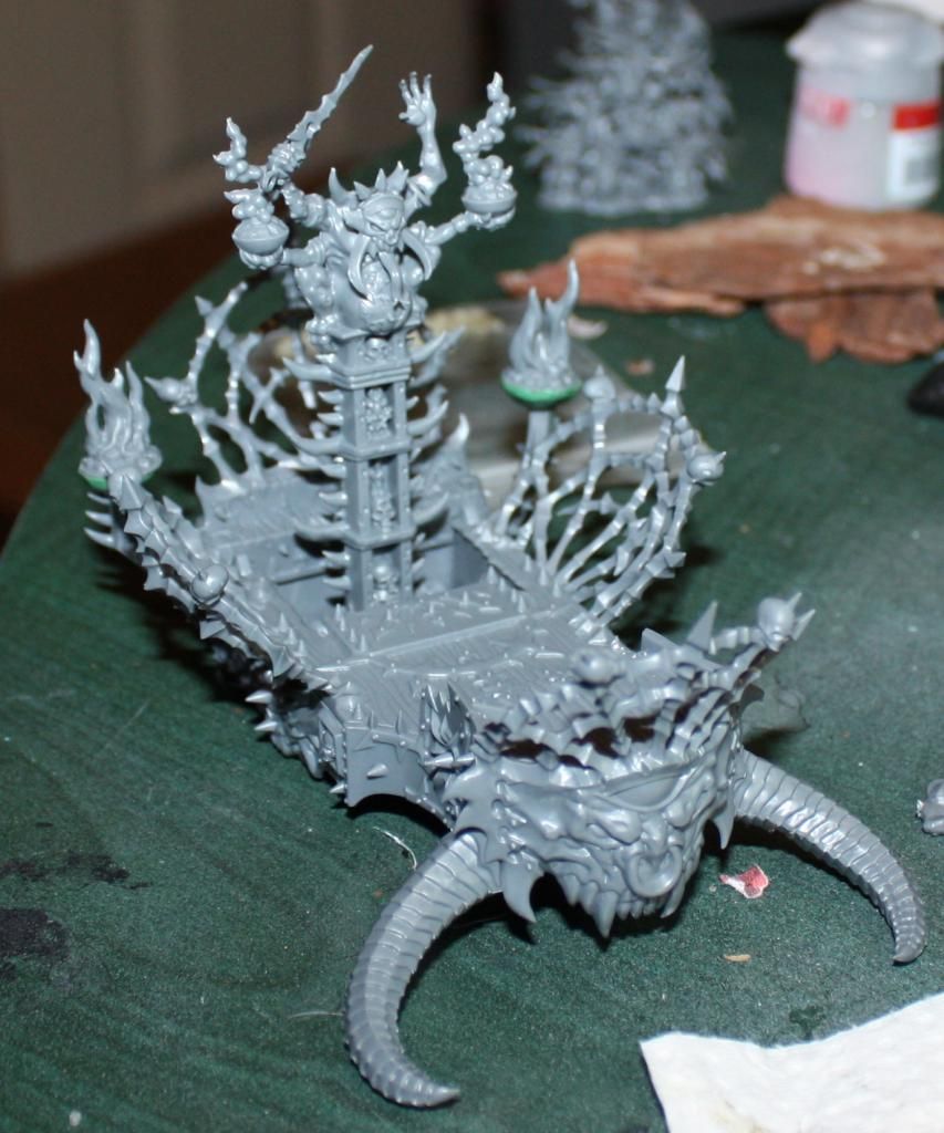 - removed the beasts hand on the front horn, since i want something different to hold the warshrine. I considered nurgling, but i have no clue how to make it work. I'm now considering making it float, with a few plaguebearers on board counting as crew members/monsters...