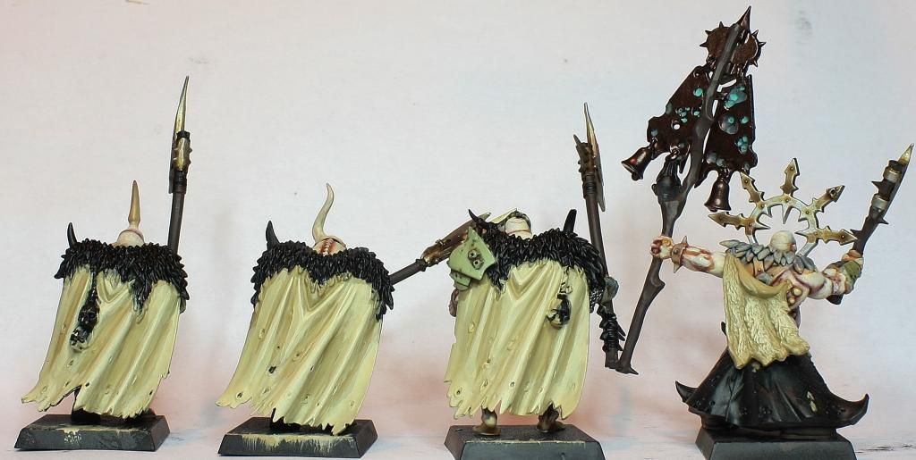Another night of painting until the wee hours last night allowed me to be almost done with the Warriors, with the armor, some details and most of the cloak done. I think i could manage to finish them this weekend if i get to spend enough time on them.