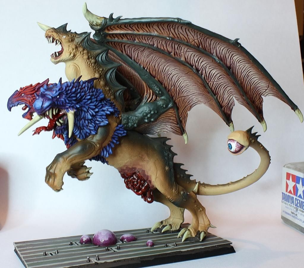 I often think about starting an all-monster army, but each time i take on painting one of them, i have all kind of trouble with the flat surface, and it often ends up below what i believe i can achieve. The Chimera kinda had that problem as well, but i think I still managed to get something nice out of it.